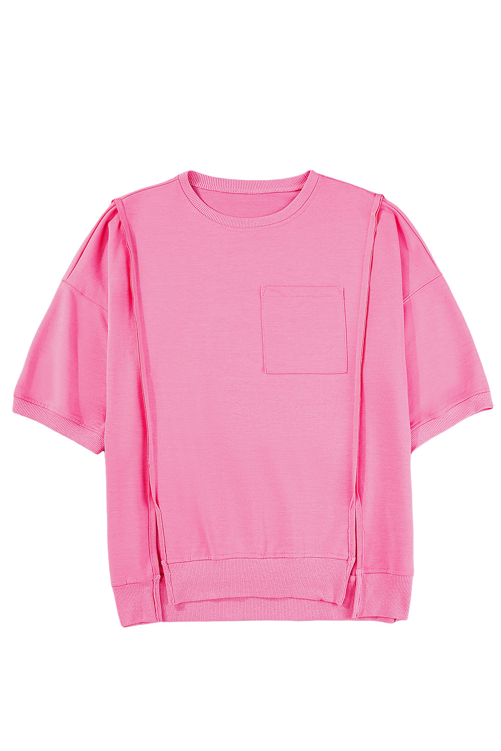 Rehaussez votre look décontracté avec ce t-shirt ample fendu avec poche poitrine et couture apparente. Doté de fentes latérales pour la respirabilité et d'une silhouette moderne, il est parfait pour adopter un style décontracté et confortable. Restez élégant et organisé grâce à la poche poitrine pratique.