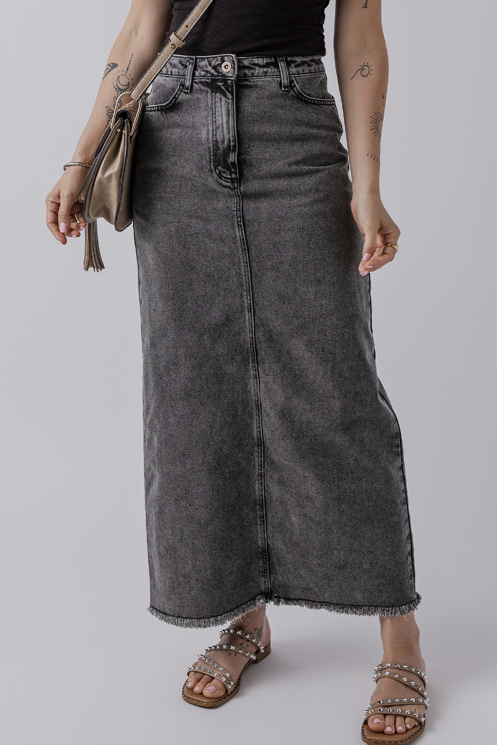 Cette jupe en jean présente un design classique et élégant avec un ourlet brut qui ajoute de la nervosité. La fente dans le dos ajoute une touche moderne et permet un mouvement facile, tandis que la taille haute flatte la taille naturelle. Confectionné à la mode et de manière flatteuse en denim.