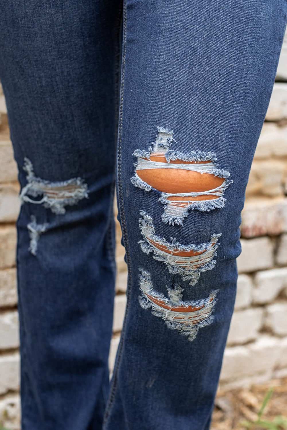 Ajoutez une touche évasée à votre garde-robe avec notre jean évasé effet vieilli foncé. Ce jean en denim élégant offre une coupe large et flatteuse qui rehaussera n'importe quelle tenue. Parfait pour les femmes à la recherche d'un ajout unique et tendance à leur garde-robe. Ne manquez pas cette occasion, achetez le vôtre dès aujourd'hui !