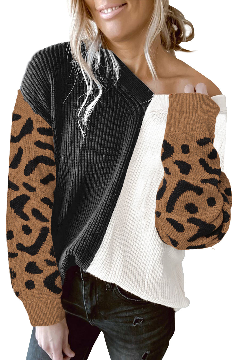 Ce pull tendance pour femme présente des couleurs contrastées et une coupe ample. L'encolure en V met en valeur vos clavicules tandis que les épaules tombantes ajoutent une touche décontractée. Complétez n'importe quelle tenue avec cette pièce polyvalente, disponible en plusieurs tailles dans notre collection de vente en gros.